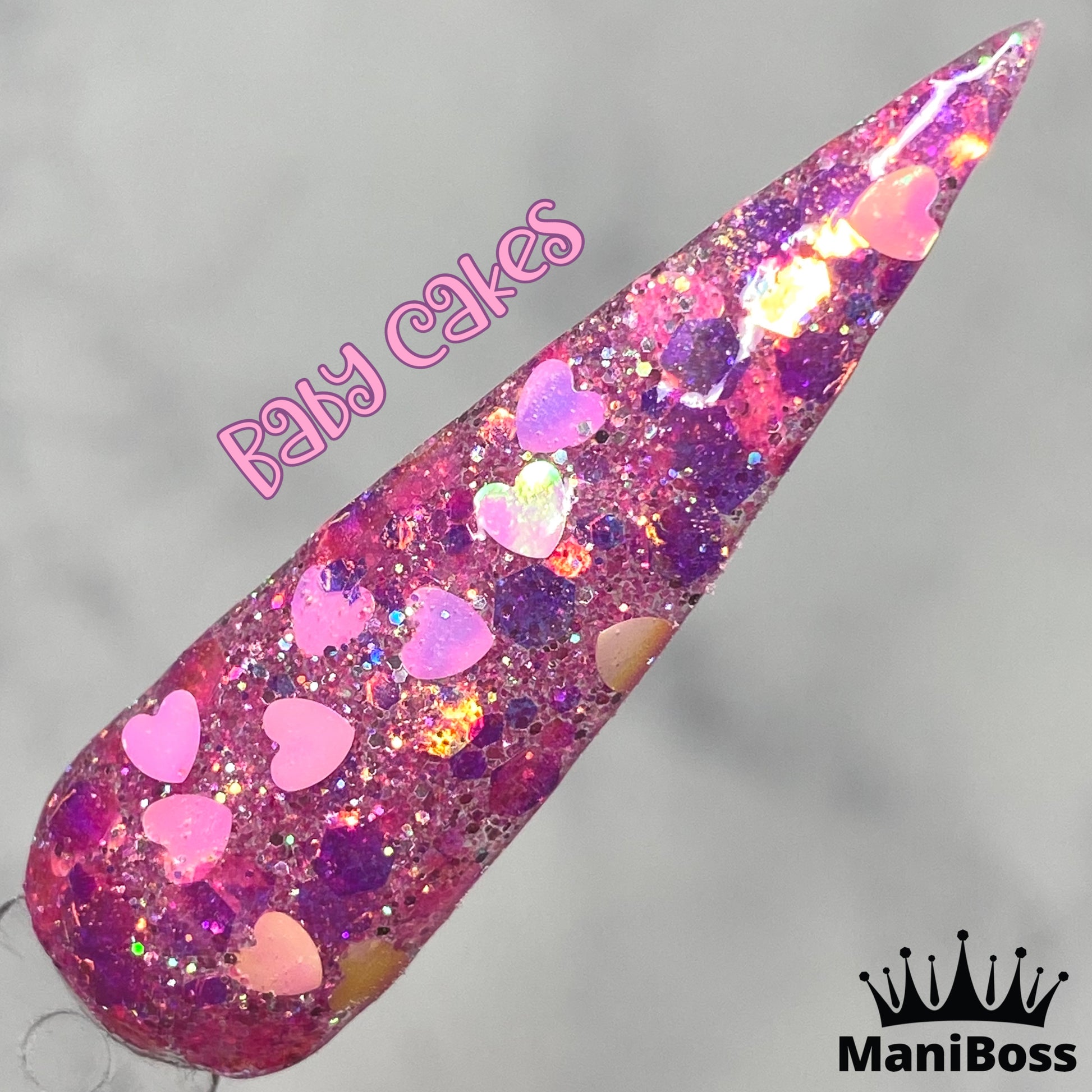 Pink and purple iridescent fine and chunky glitter with pink color shifting hearts