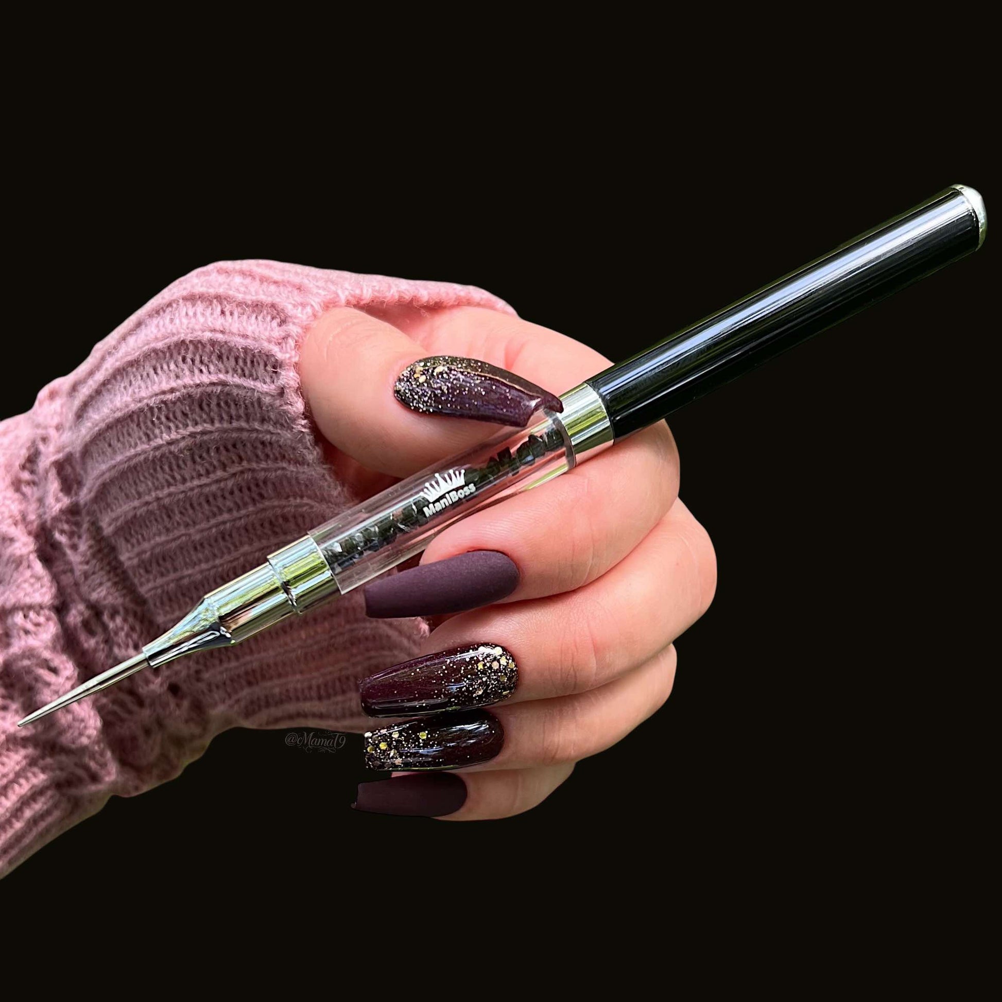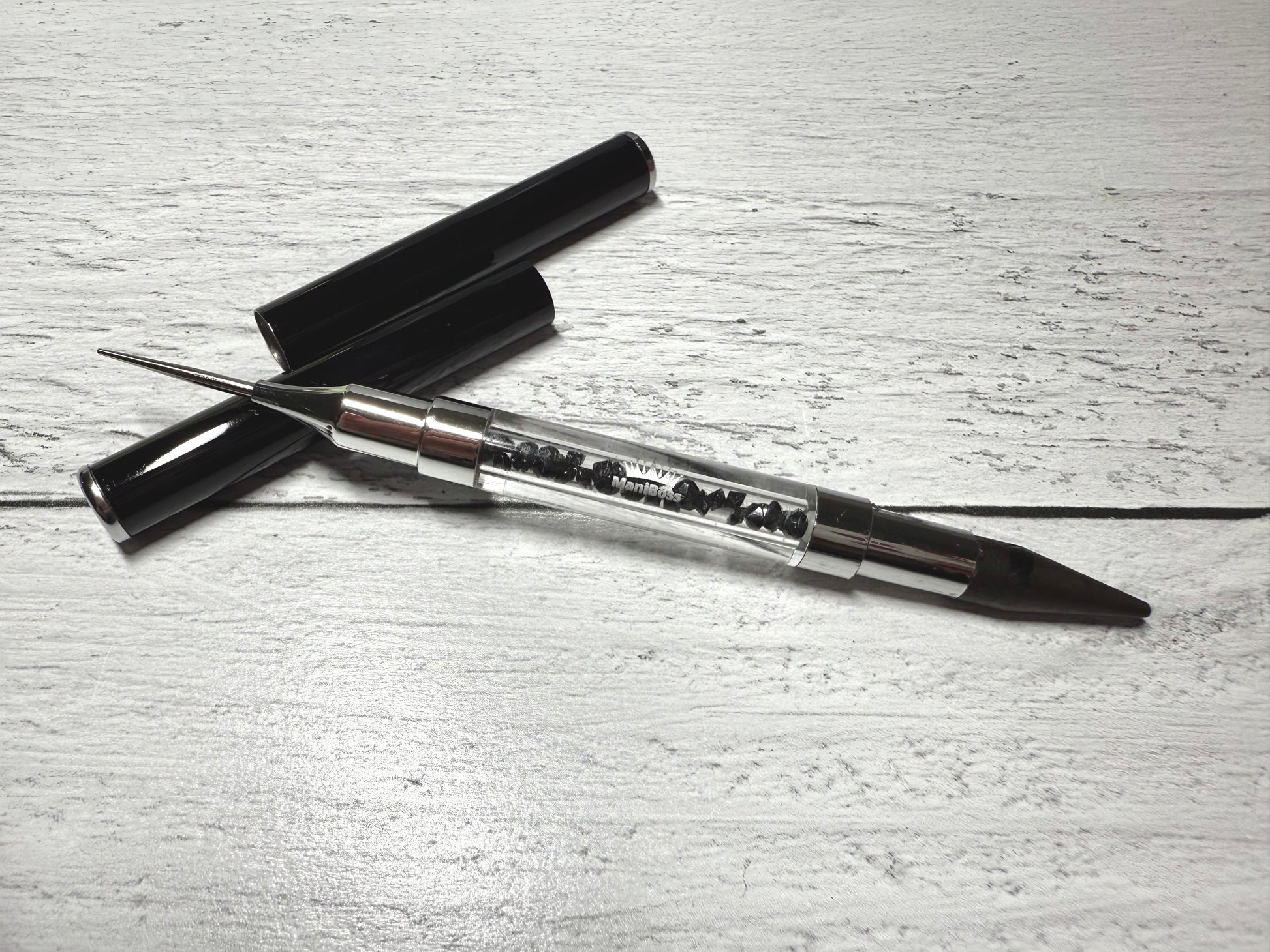 The dual-ended precision tool is perfect for cleaning up your cuticle edges or picking up gems and large glitters!