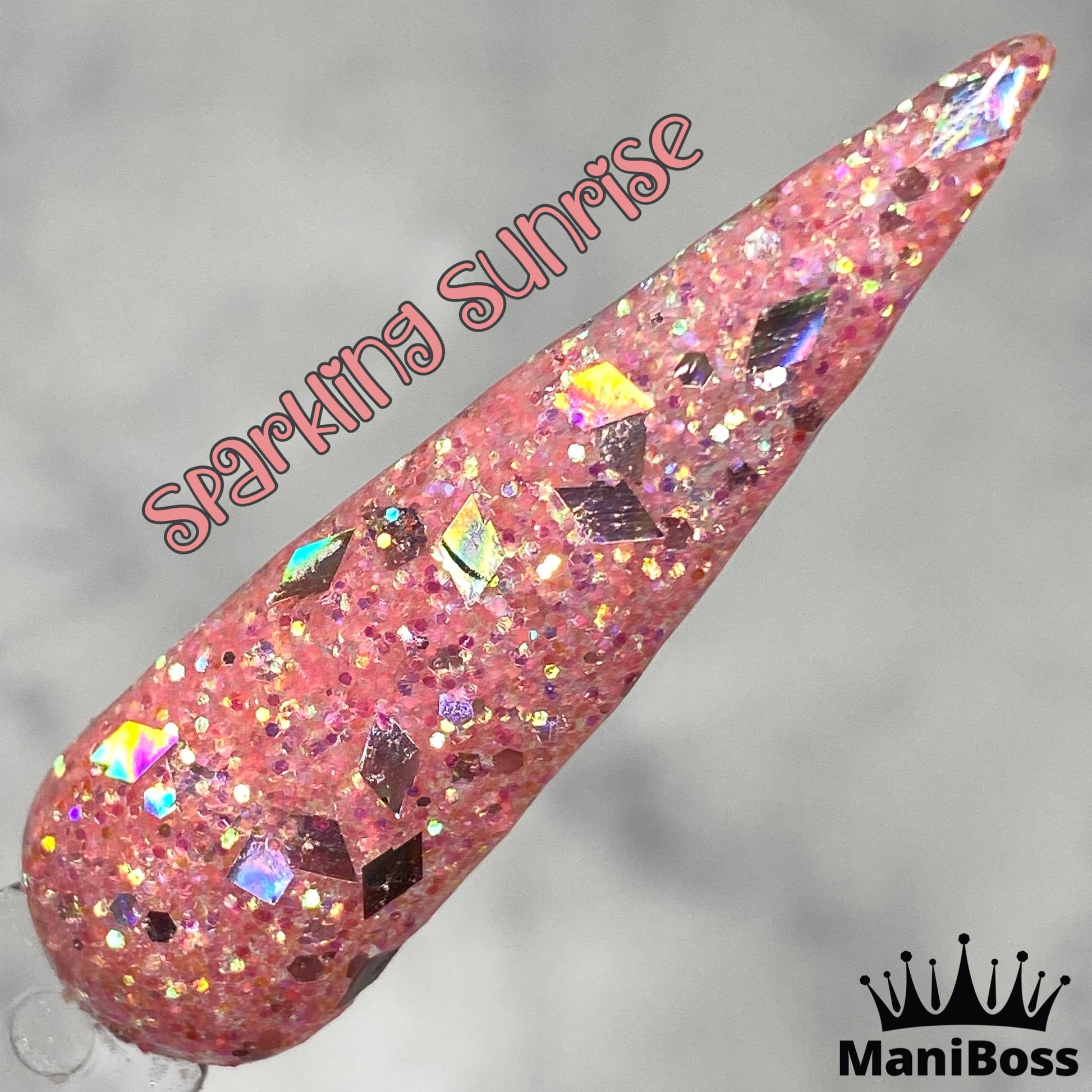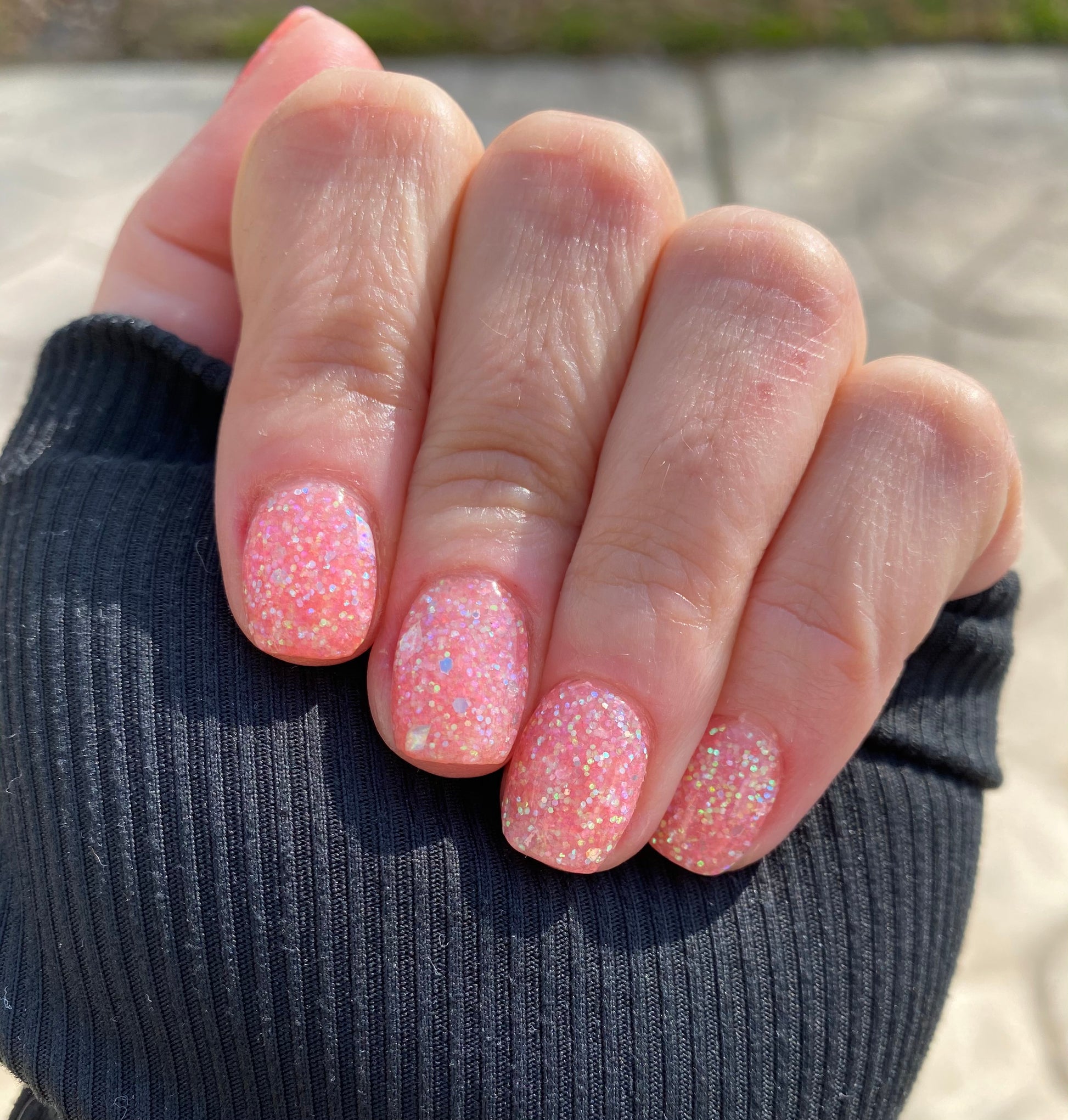 Pinky coral glitter dip with chunky silver holographic diamonds